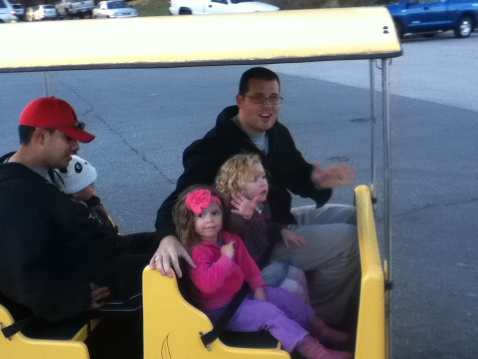 Later that afternoon we went to another Christmas celebration, where T was thrilled to get to ride in a horse drawn carriage (much less scary than riding an actual horse!) and a train. Nora actually really, really loved the train, she loves having the wind in her face. (These pictures aren't the best, my camera died right when we got there, so we had to use the ipod)